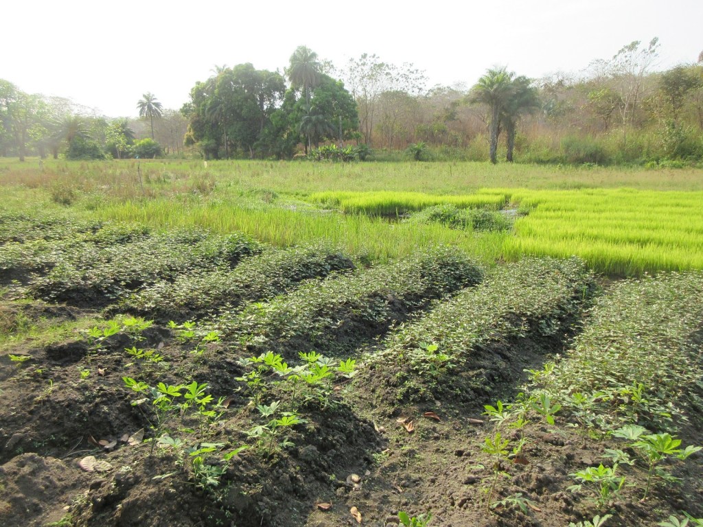 Man I love integrated farming; cassava, sweet potato, rice, and bananas all in one photo!