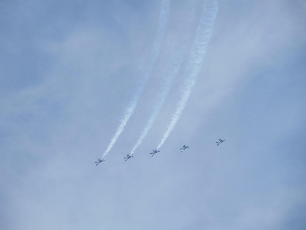 Eventually Fat Albert flew off and then the real show began. The Angels started off flying all together in a diamond formation, but then planes #5 and #6 broke off in a dramatic fashion while #1-4 continued to fly close together and do turns and stuff. #5 and #6 then spent most of the rest of the show playing chicken with each other, doing dramatic (and slightly rude, if you had asked my then very surprised self) flybys of the crowd, and at one point doing a slow flight demonstration. This raised several questions for me. First, how do #5 and #6 feel about all this? #1-4 are all like “Hey guys we’re just going to do normal stuff but kind of close together, but we want you guys to fly at each other real fast and turn away and just the last second so you don’t die.” Then after all that is settled #1-4 go “And you know how the most fun part is flying really fast? Well while we’re busy flying fast we want you guys to fly as slow as you possibly can.” Are #5 and #6 in trouble? Did they do anything bad?