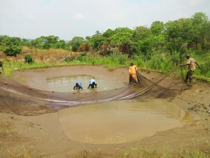 My host dad finally did a fish harvest this week. I had been in town for most of the day submitting some paperwork. After returning, I went down to the ponds and was surprised to find a harvest in progress. Two of my host dad’s ponds had been part of an experiment with Scaling Up Nutrition (SUN) comparing commercial feed and home-made feed. The ponds have been stocked for the better part of a year but I guess they finally got around to harvesting l them. I suspect I didn’t get told it was going to happen because my host dad didn’t get told either. Either way, I am glad they finally harvested the things.
