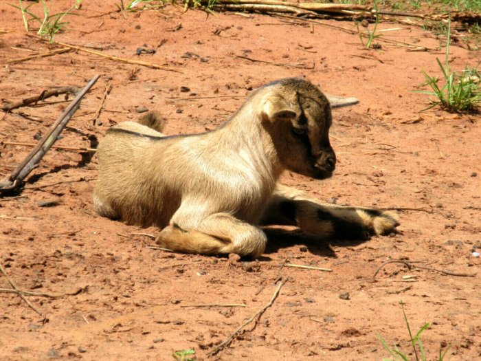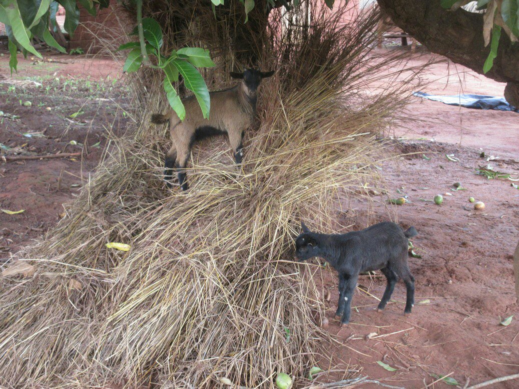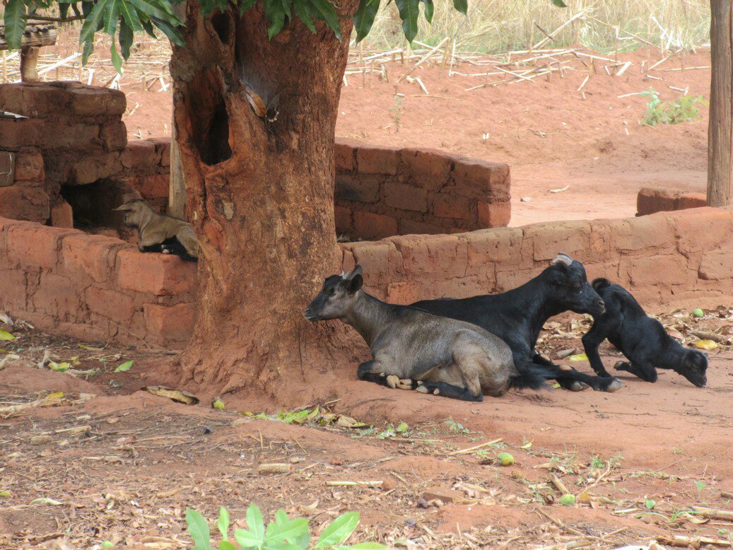 Here’s some goats hanging out near my insaka. Cute right? Look at those little guys, perched on the wall! And then they get up and kick over the bricks and cause all sorts of damage and then poop right in the middle. Stupid goats. The soundscape of the village is dominated by goats. I wake up most morning to the sounds of goats bleating. There was one goat for a while that would frequent my yard, sneezing heavily while also trying to call some willing female to mate with. I think Barry White would have worked better. When you first start living around goats, it is hard to distinguish the sound of children screaming and goats screaming. They’re very similar, though with experience you can tell them apart. It is handy to forget that, however, when the neighbor kids are crying and you can pretend it is just goats. In the dry season, the goats just wander around freely. They eat whatever they can find, which is fine. In the rainy season though, people start growing maize and the goats get tied up. The baby goats, however, get to wander around. Usually they stay with their parents. Sometimes, those little assholes break my fence and eat my velvet bean: