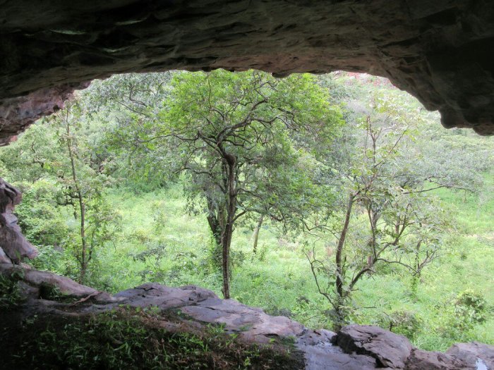 As I descended into the valley and looked around with little evidence of human habitation (well, minus the trails and evidence of annual burning to keep the vegetation down), I tried to imagine the landscape 1000 millenia ago, teeming with wildlife and inhabited by literal cavemen. This area would have provided everything they needed, from water to game to shelter. It’s worth pausing to realize that agriculture is a realtive newcomer to the region, having been introduced by the Bantu people only 1000-2000 years ago. Pulled from my reveries by the realization I had better find these caves and then start heading home, I went back up Itimbwe Gorge to explore the caves. The first two caves described in the pdf wre the ones I eventually explored, but they only mention occasional habitation. The pdf mentions a third cave “at the foot of a high vertical face nearby” in which there are abundant signs of permanent occupation. I never found that cave, but hiking up to one pot that wasn’t cave did give yet another pretty view.
