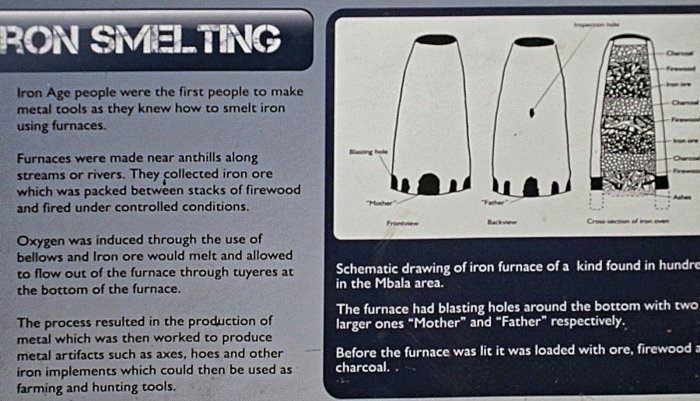 One of the more significant things about the Bantu people is that they were an iron-age culture when they first arrived in the area, displacing the stone-aged bushmen. Being an iron-age culture of course requires iron, and the way you get iron is by smelting it. You smelt it in an iron smelter, called a lungu.