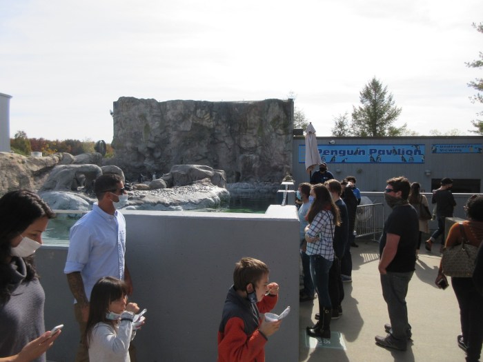 The “we” in this scenario was me and my super amazing girlfriend. She will tell you that we did not in fact set out to steal a penguin, but instead went to Mystic Aquarium because it is a nice place to go and also that she has fond childhood memories of visiting every summer, but she is just trying to cover her tracks. We visited exactly a week ago from when this should be posted, so it was a slightly cool October day up in Mystic, and I was a bit surprised at how many people were there. They had timed tickets, so I had imagined relatively controlled crowds, but there were about as twice as many people as I would have really been comfortable with. And not to complain too heavily about children, but they’re excited to see beluga whales and less excited to stay six feet away from people. I can hardly blame ’em.