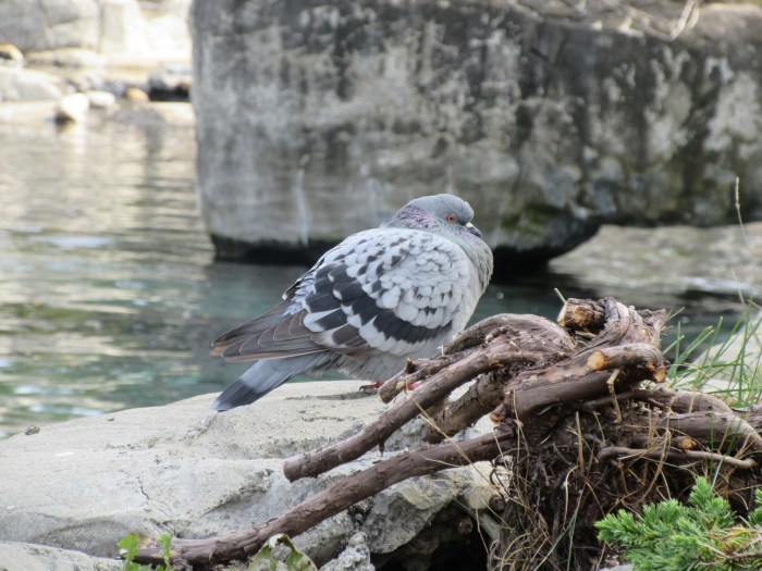 After seeing all the indoor exhibits, we went outside and took another lap around the outdoor exhibits, but alas the potential for penguin thievery hadn’t improved any. So we went to go say goodbye to the belugas who, I am sure, were as sad to see us go as we were to leave them, and then exited via the gift shop. I managed to buy a lapel pin, despite them hiding them in the absolute least visible spot. We then set off to eat some seafood, which now that I think about it was probably in bad taste? Tasted good though. I also took this very nice picture (I think) of a pigeon: