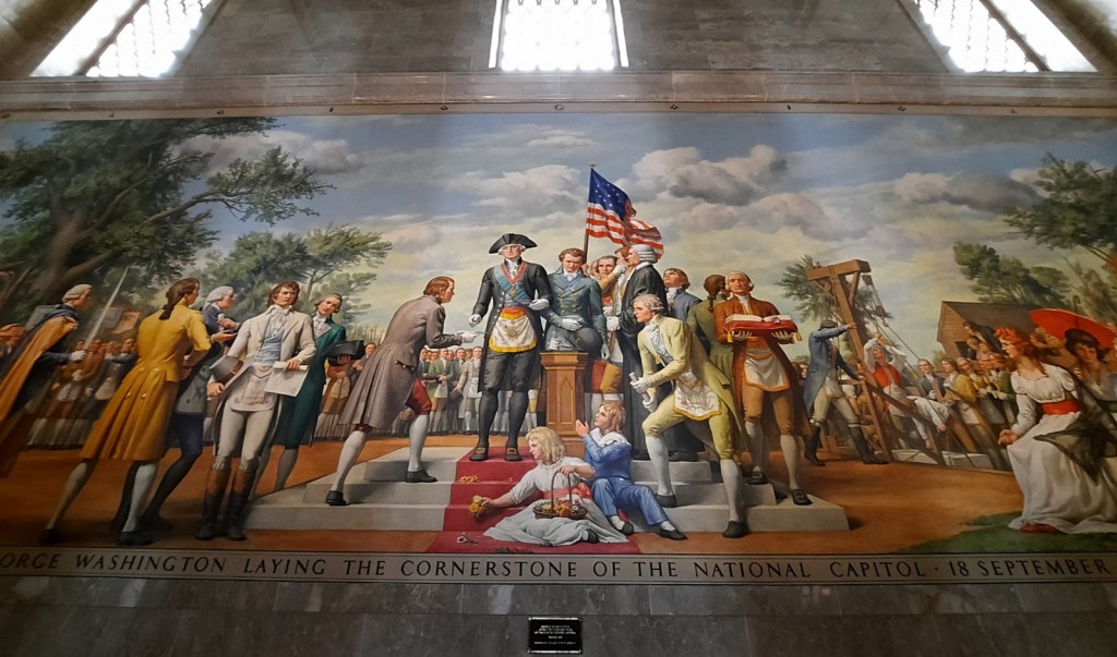 I mention all that just to say that if you visit the George Washington Memorial Mormon Temple, which I recommend because it is great, you should know what you are getting yourself into. But to start at the beginning, the tour was very nice. You meet in the main entryway, which includes giant marble columns, giant paintings featuring George Washington, and a giant statue of George Washington in his full Mason regalia. Normal stuff and if it had more natural lighting I might push to do up our living room in a similar way.