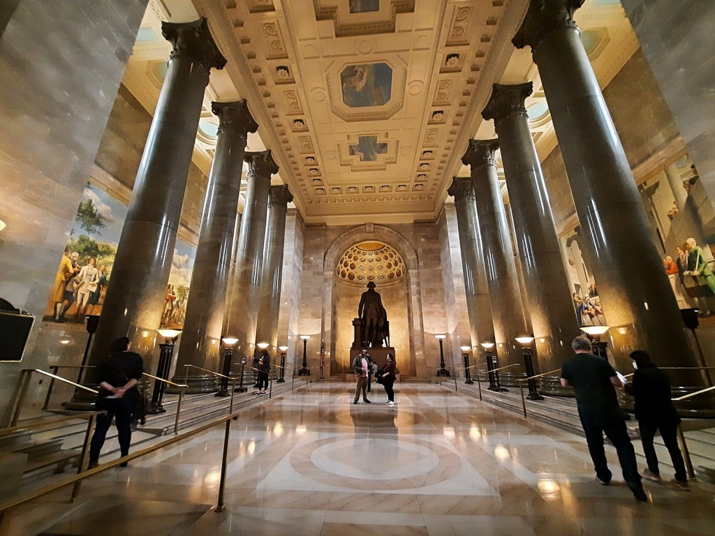 I had actually visited this Masonic Temple five years or so ago, before I knew any Masons. I remember it being a very interesting time, and I also remember them being very into George Washington. I realize this makes sense, but man you have no idea if you haven’t been there. This memory was not only confirmed but massively boosted upon this visit. A little later I was trying to come up with the tenants of a truly American religion with my super amazing girlfriend, one that wasn’t like just Jesus fanfiction, involving instead like maybe eagles and stuff, and she pointed out that George Washington is already well on his way if not already an American god (American God?). At the Masonic Temple, this is evident by the sheer and overwhelming number of George Washington relics they have, turning the whole temple into more or less an architecturally impressive reliquary. Going through the things I managed to snap pictures of, a short list of George Washington objects include: