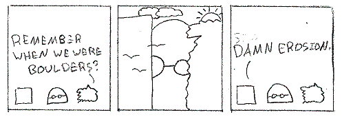 After that the episodic nature of the comic petered out. I tried to do a lot of different things with my three panels and three characters, but looking back it really shined when it leaned into the fact it was about rocks: