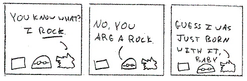 Sometimes I consider revisiting Rocks but I never have. I just repost them on the internet every once in a while to relive my long-haired glory days of webcomic almost-fame. I think I mined the very depths of rock-based webcomic humor the first time around, but Hollywood loves a reboot so maybe there’s a chance to tread new ground. Only time will tell.