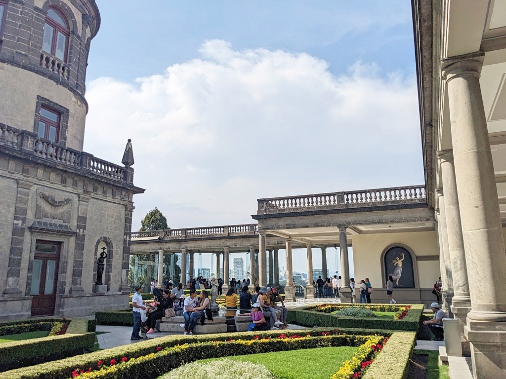 After the anthropology museum we were off to Chapultepec Castle, home of the Museo Nacional de Historia. It is perched on the top of the tallest hill in the park, which caused me to comment to my super amazing wife about how it is always men that want to live on top of hills because they don’t do all the work of hauling water and food up there every day. She has heard me say this many times before and is slightly tired of it. But what the site lacks in practically it rewards with views in spades. It was mid-afternoon by this point, so we were a bit hot and flustered as we trudged up to the castle, but it was awfully pretty. It was also very crowded, as admission is free for residents on Sundays, but I like it when public spaces are full of the public. The park itself was full to the brim as we made our way to the castle and I wasn’t quite sure how the place fit all the people we saw walking up the hill. The castle itself has been home to various Mexican presidents and emperors, and much of the museum is sumptuous rooms where these autocrats/democrats slept and/or held meetings. On the roof was a very tidy garden. It’s good to be king I suppose (until the firing squad gets to you).