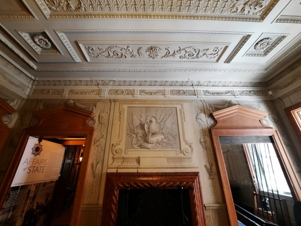 The two big focuses of the house are Larz Anderson’s diplomatic career and his love of the Society of the Cincinnati. The only two uses the house ever saw were as the personal residence of the Andersons and then has headquarters of the Society. The house incorporates various bits of Society of the Cincinnati symbols in like the plaster work and the like, and after the Andersons died they left it to the Society to use as their headquarters. The single most interesting thing I learned on the tour is that the city of Cincinnati is named after the Society, and not directly after Cincinnatus as I would have assumed. On the tour they talk up the history of the Society a bit, but they’re not exactly trying to get you to join, because you can’t, sorry (not sorry).