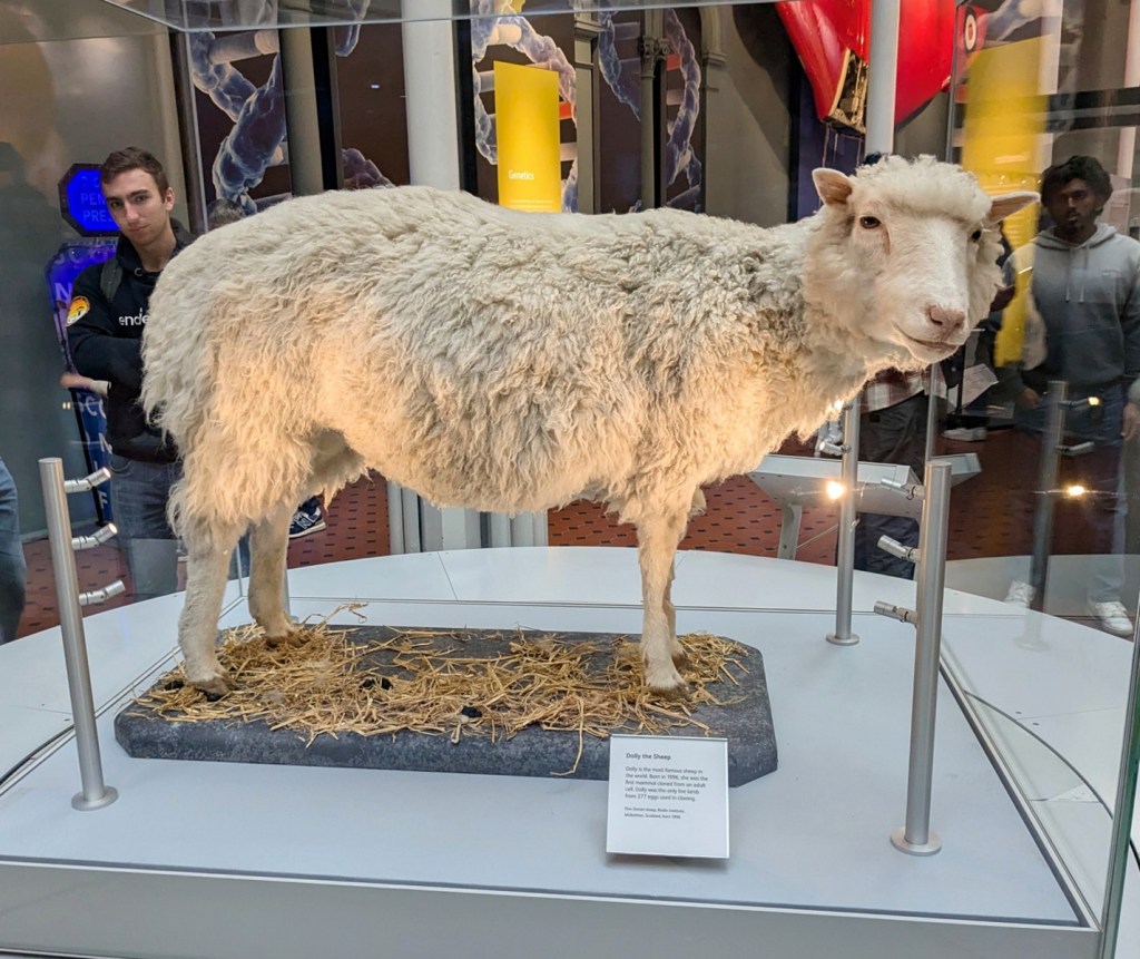 Dolly the Sheep! Nice they gave her some hay.