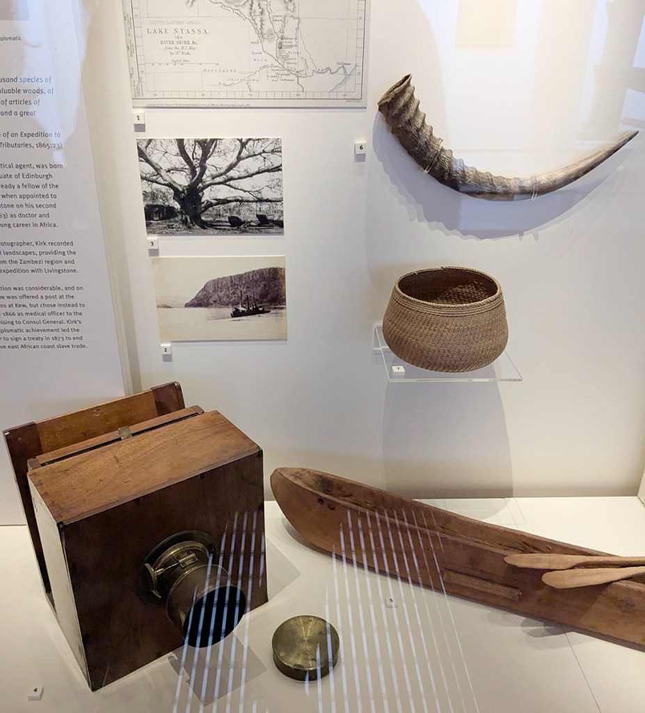 The museum is extremely well done. Although now juuuuust about a century old, back in 2017 it got a £6 million grant and did a lot of work on conservation and updating the exhibits, reopening in 2021. The museum is laid out chronologically through Livingstone’s life. Actually a bit to my disappointment there is not much at all about the cotton works themselves, though do they have on display a spinning mule and a model of what the cotton works would have looked like while Livingstone was there. When they talk about the works it is in the context of David working there as a boy and young man, saving up to put himself through medical school.