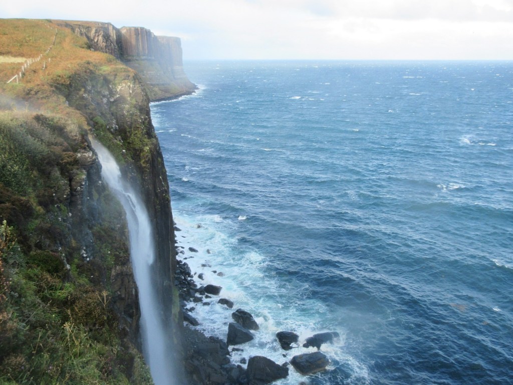 Anyway from there we went to Kilt Rock and Mealt Falls where we were getting sprayed even in the parking lot. It was real windy! I think most of the water went back up on the cliff instead of down into the ocean. We tried to take a few pictures but were mostly getting splashed, but it was very fun. In slightly less wet spots though, the whole skyline out there on that edge of the world is just gorgeous, the whitecaps coming into the bay bordered by a rocky shore. Magnificent.