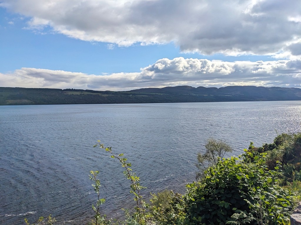 And shortly after that we were off Skye, heading back across the country to make it to Inverness, our last overnight location on the Scottish mainland. Along the way we cruised on by Loch Ness. I remember visiting Urquhart Castle and at least one of the museums dedicated to Nessie last time I was in Scotland. Alas, this time around we weren’t able to visit the castle (we couldn’t reserve parking) though we did stop into Drumnadrochit for some lunch and to pick up some obligatory Loch Ness souvenirs. My most significant personal discovery was that Loch Ness is big. I didn’t have to do the driving last time but we were cruising on by that lake for a while. Towards the north end we stopped at a turn-off to admire it for a bit, though we didn’t see Nessie.