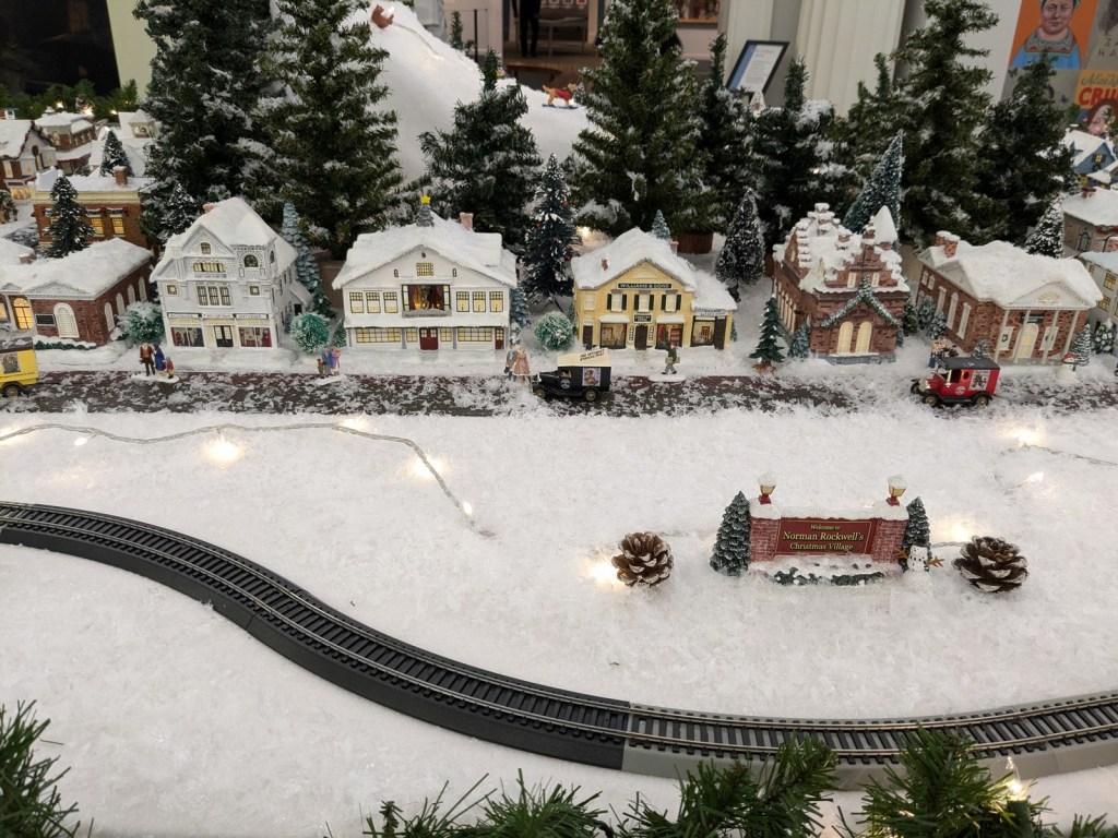What we did explore was a purpose-built museum housing a large number of Rockwell’s original works. Since it was around Christmastime when we first entered the building we were greeted by a train set recreating “Home for Christmas,” which itself is a depiction of Stockbridge, where Rockwell lived and worked, so maybe the train set is just a recreation of the real town with no middle man in between. Hard to tell. But every year now Stockbridge dresses itself up as the painting, so art and life have simply become one.