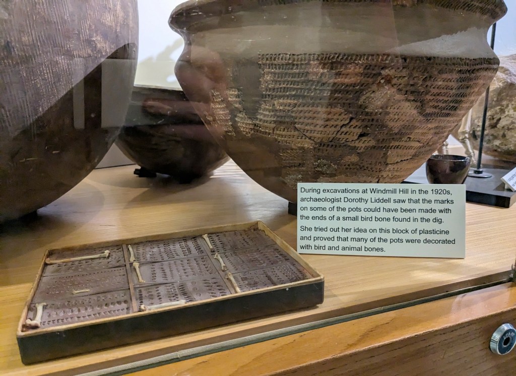 In the museum, which is small but good, they have a number of artifacts on display from the henge. Despite its magnificence and proximity to Stonehenge there were not many people at all visiting so you could take your time strolling through. I was most interested in some of their experimental archeology, specifically how to decorate ceramics with small bird bones, so make sure to keep that technique in your back pocket, ceramicists.