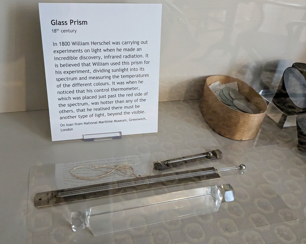 It is a very nice little museum and is in the very house where William Herschel discovered Uranus in 1781. To be specific, it wasn’t in the house that he discovered Uranus, because he took all the observations from the back yard, so I guess it was outside the house. But then again I guess the discovering part in astronomy is mostly like math and stuff and he probably did that inside so maybe I am splitting hairs. Or splitting the light spectrum, because William Herschel also discovered infrared radiation, and the museum houses the prism he (maybe) used to discover it (on loan from the National Maritime Museum in Greenwich).
