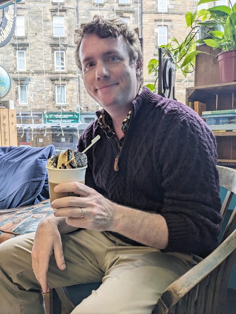 Our final day in Edinburgh began with some light shopping, first of all for donuts at Kilted Donut. That place was great. Between the two of us we got three donuts and couldn’t finish them. We ate them on a bench in the shadow of the castle, looking majestic (the castle, not us, we were stuffing our face with donuts). Though feeling a little bit like we shouldn’t be there (maybe like the Edinburgh Seven did), we popped into the Edinburgh Futures Institute to check out some more tapestries before heading to Victoria Street for my super amazing wife to buy a tweed bag, and finally to a vintage store where I got a tweed jacket. With our new wares I don’t think anybody could tell we weren’t Scottish.