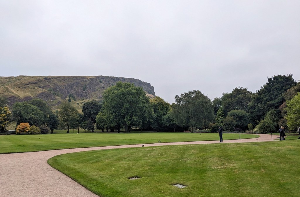 Then speaking of government it was finally time to head across the street to the Palace of Holyroodhouse, this being the King’s official residence in Edinburgh. The admission was more than we expected BUT the visit was better than we expected (no pictures here, what are they hiding). They had the most advanced audio guide we had seen, and we were unprepared for the amount of history that had happened in the place. I mean for example it all started with David I founding the abbey to Mary Queen of Scots suffering through her secretary being murdered by her husband. They still got the bloodstain on the floor. They had a lot of artifacts from Mary and it is worth visiting for those items alone. My favorite part was the Great Gallery. Charles II had commissioned Jacob de Wet to paint all the real and legendary kings of Scotland, but to cement his right to rule of Scotland all the portraits share Charles’ very particular nose. They just don’t do statecraft like they used to. I was also interested that they referred to all the royals by their Scottish titles, since this is Scotland, but it took me a sec to figure out who like the Duchess of Rothesay was. But then the real treat is the tail-end of the tour, when you walk through the palace’s gorgeous gardens which have the benefit of being backdropped by Arthur’s Seat. David I had good taste in real estate.