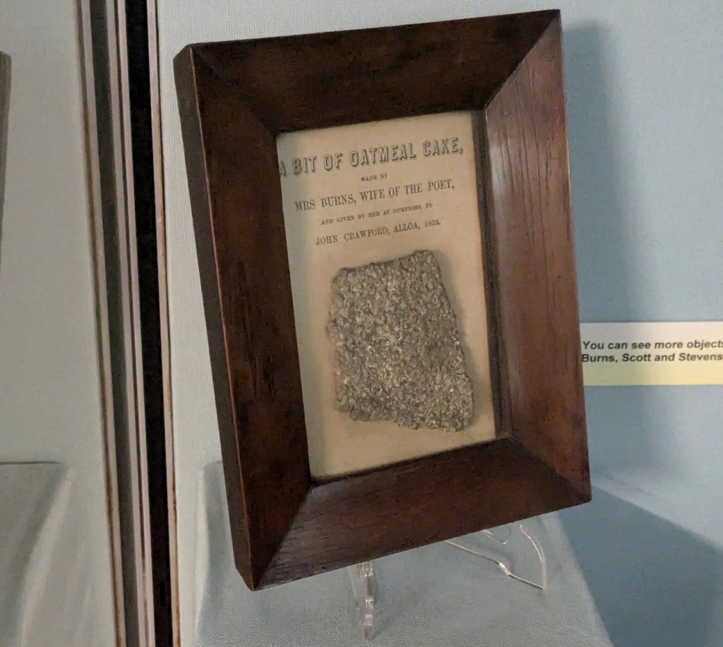 I’m not sure the level of irony here, but the plaque beneath notes “This biscuit is made by one of Robert Burn’s many sweethearts, this time his wife, that ‘winsome wee thing’ Jean Armour… at the time Burns died in 1796, Jean Armour was caring for five of her own children and a daughter of Burns from an illegitimate affair, and so must have had a tried and tested recipe for these oatcakes.”