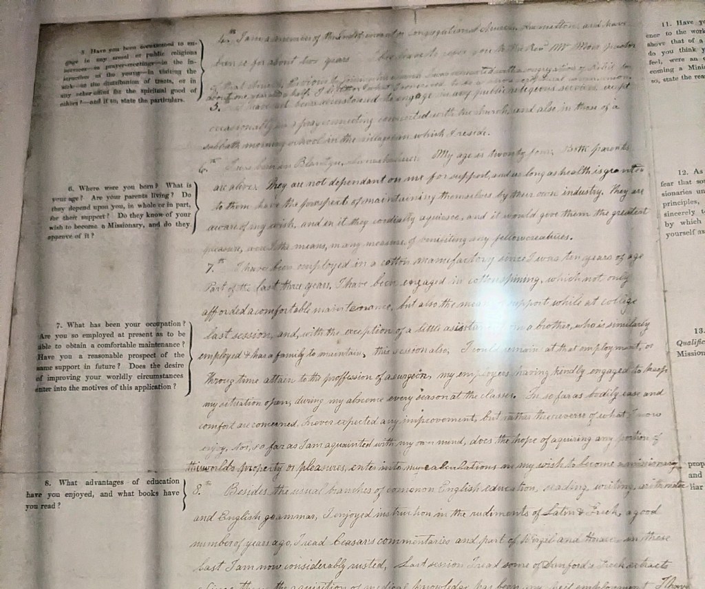Livingstone’s application to the London Missionary Society, which he submitted with an essay on the Holy Spirit.Livingstone’s sextant!!!