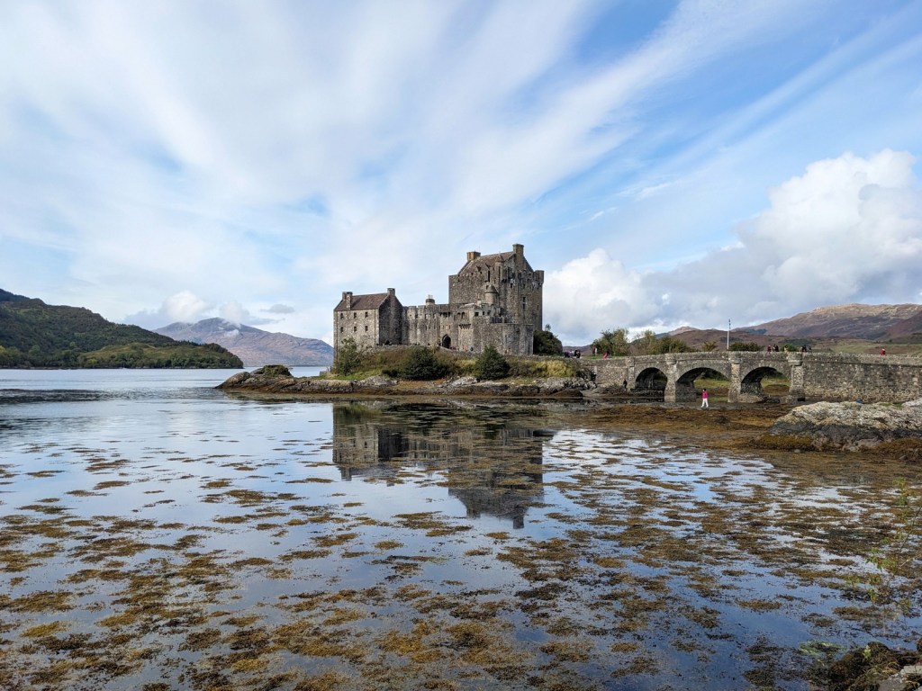 The next day we continued our journey to Skye, once again stopping to take in all the stunning views. We stopped at one point in a little parking area to take pictures of the clouds over a loch and it was ridiculous man, it should be illegal to be that pretty. There was also a food truck called “Burger Queen” and I got a coffee from them mostly in appreciation of their name. The road eventually brought us to one of the more famous sights in Scotland: the Eilean Donan Castle.