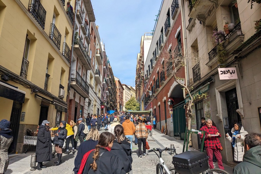 The first of those places to be was El Rastro flea market, which is a Sunday market thing which spans a number of streets. It was very crowded and I was a little nervous because the guide books all warned the place was rife with pick pockets, but we managed to avoid being pickpocketed. Instead all we met were extremely helpful and friendly people selling all sorts of fun trinkets and antiques and the like. We got a Christmas ornament and I regret not getting a cute little brass sheep that looked like the cute little brass things I see in the old houses we visit, but them’s the breaks. It was fun to see this side of the city and worth a stop if you’re in town at the right time.