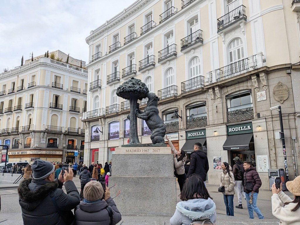 History absorbed, we made our way up towards the Plaza de Sol, though not in much of a hurry. We poked into some gift shops and got some gelato and macaroons (which is a lot of cultures all smashed into one thing). At another candy shop we got some nougat to send home and then finally admired some people trying to touch a bear’s butt: