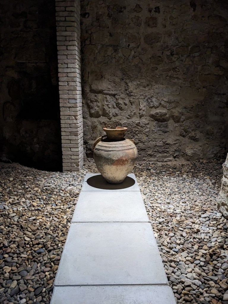 Almost the whole rest of the day in Córdoba was spent poking into interesting little place we more or less stumbled upon. After the bullfighting museum and even after some additional souvenir shopping we had plenty of time so when we stumbled upon the Baños del Alcázar Califal (Caliphal Baths) it was worth wandering in. Here’s the virtual site map, though maybe the Spanish Wikipedia page is more useful. It is a small museum built into the ruins of a hammam built in the 10th century by the Cordoban caliph al-Hakam II, Wikipedia tells me. They were used for a couple centuries and then destroyed when the city was taken over. There’s not a whole lot in the museum, mostly a guided path through the old rooms of the place. Once again lacking context for much of what was going on I didn’t really understand what I was looking at most of the time but I guess neat to wander around. The thing I was most interested in was the heating system for the hot room; apparently there was some cool pipes and there would have been a boiler (I love boilers) but I couldn’t really tell what I was looking at unfortunately. Oh well.