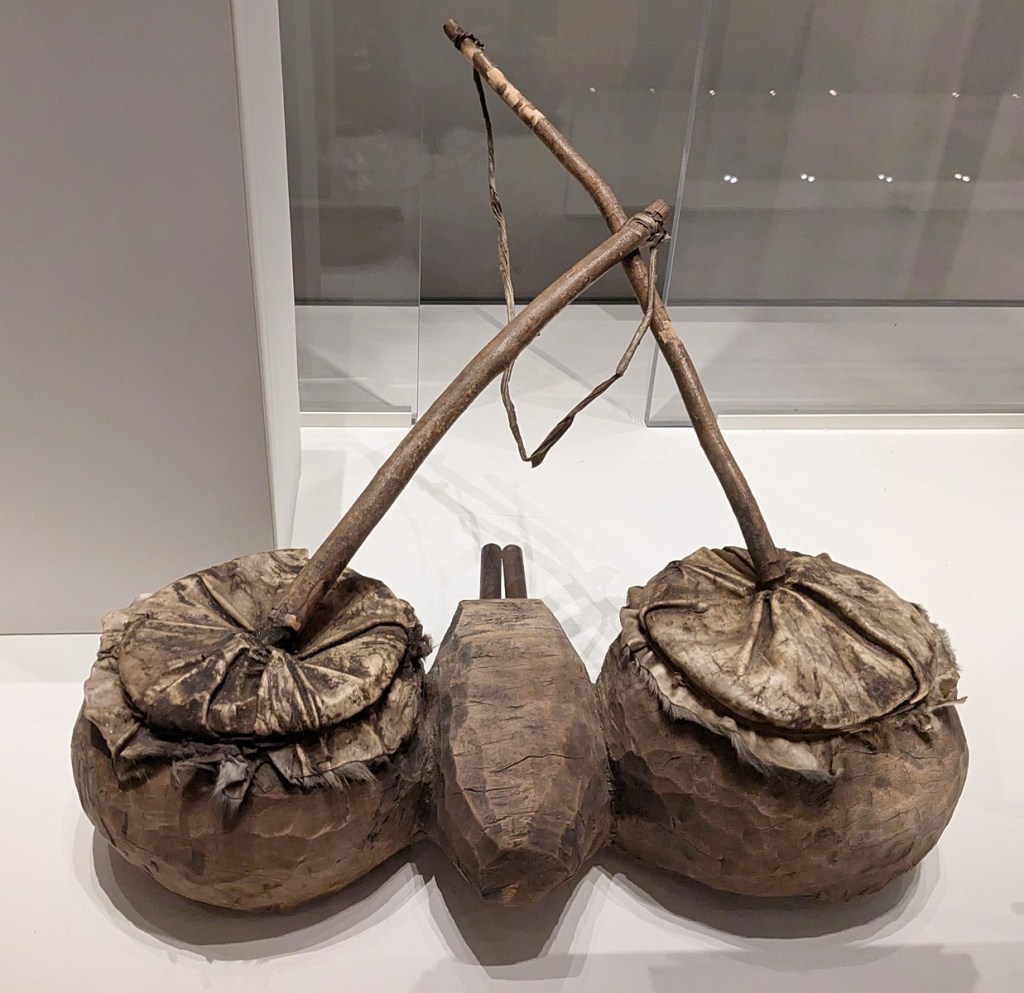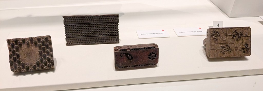 Of the non-commissioned art, there was so much packed into a relatively small gallery. Their textiles display was thorough, with all sorts of different types on display. Of interest were also carved wooden printing blocks, used for printing on fabrics. My super amazing wife, in addition to the textiles, was drawn to the towering display of pots, while I was checking out all the different products of blacksmithing. This included a set of traditional bellows and about as many different ceremonial knives as I could possibly imagine being all in one place. And a hand plow, which I hadn’t seen before.