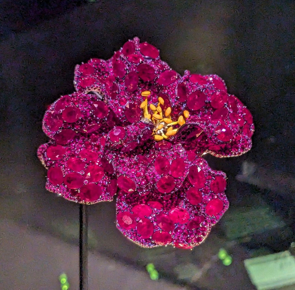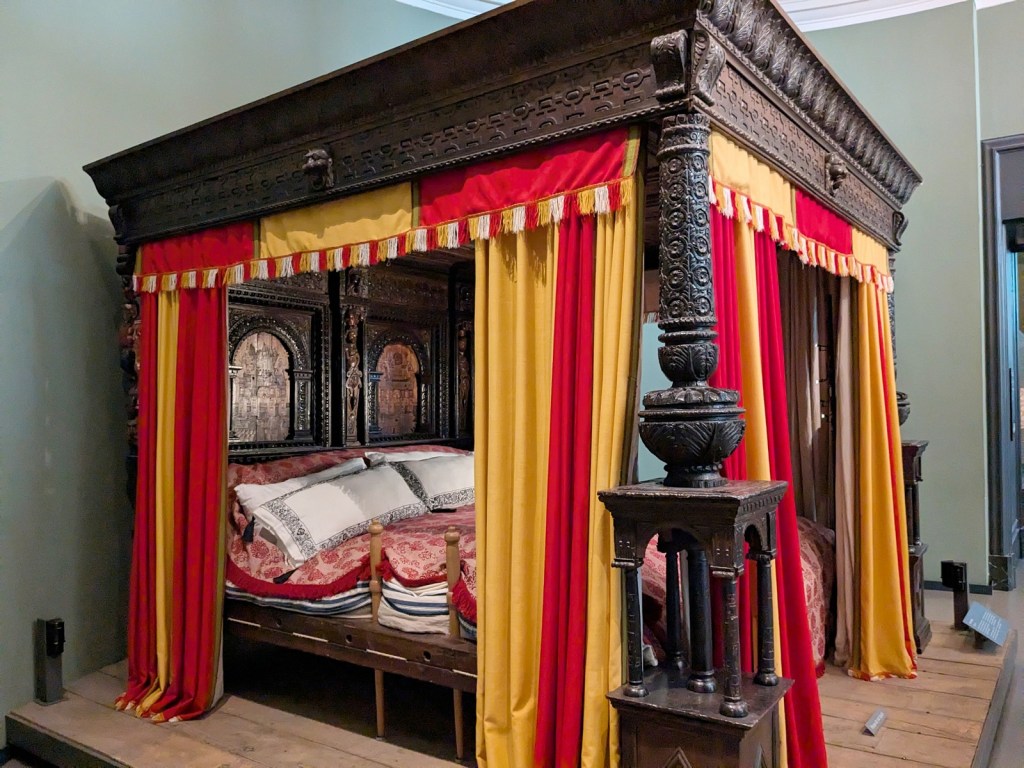 Look from here I will simply have to recreate the experience of going through the rest of the V&A, which was just absorbing like body blows of beautiful object after beautiful object by telling you about them one after another, relentlessly, making you jealous, like I was, that there is so much beauty in the world and yet we have only a limited time in order to perceive it. In the guts of the museum itself our first stop after the Cast Courts was the extensive jewelry collection. We had wanted to see some particular pieces, and we did, but why limit yourself to one when they have thousands of pieces spanning millennia. After that we just stumbled upon a hall full of tapestries, and like, we like textile arts, we have to go see the tapestries. We are here to see the tapestries! I couldn’t stop saying that in my head. But here are these works of art, gigantic, 500 years old, how did they do that, what luxury to decorate your house with such things just to keep out the drafts. From there we just blast through the theater and arts section, catching glimpses of Dua Lipa’s Mugler bodysuit alongside Stormtrooper armor alongside the biggest celebrity they have to have had, the costume worn by Manuel in Fawlty Towers, yes, Manuel! Manuel from Fawlty Towers, one of the greatest British TV shows of all time (though I can’t even watch The IT Crowd it is too funny), they had that sucker just on display in a corner, now we are going through a whole section from William Morris of the Arts and Craft Movement, which is another highlight that my super amazing wife really wanted to see, but on the way there you have to stop by the particularly famous bed, and now we are very nearly lost and also hungry, but we manage to find the café, itself just a gorgeous environment, surrounded by Victorian-era tile which in itself is a delight to the senses but also we were eating some rather good salmon, alright back at it, gotta view the fashion special exhibit, I liked it all, it was all super great, up and at ‘em through another hallway, what is that chair, it has to be modern, it is so chic and sleek and minimalist, but no, it is Victorian, how did they even know to do that back then, you have to explain it to me, wait there is no time, now we are in an entire hallway, an entire hallway! of ironwork, wrought and cast and bent and shaped which we admire because my dad is a blacksmith and we want to find things he would like, and there are so many things, it is too much, my heart can’t take it anymore, we gotta get out of here and we stumble out into the sun instead of going back through the tunnel to the tube because by then we needed the cleansing rays of daylight to let it all wash over us. It is a really fantastic museum, you should definitely go.