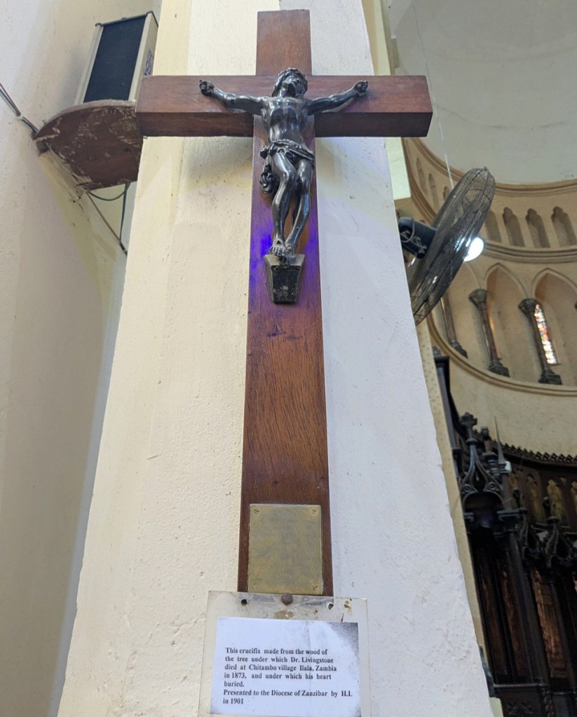 I went to the same exhibition last time I was in Zanzibar and found it very impressive. This time a tour guide took us around the church which is an experience I don’t remember from before. We must not have gone in. It was indeed pretty interesting to see the inside of the church and in there our guide gave us a history of the east African slave trade. My most significant takeaway is the particular way the guide said Bagamoyo (“bwaaaga, bwaga moyyy-yo”) to emphasize the etymology which apparently means “to lay down your heart” in Swahili. Inside the church there is also a cross made from the wood of the tree under which Livingstone’s heart was buried. I don’t actually think the list of objects made from that tree is too long, but here is a chunk of it and here is another chunk of it (different from the chunk of a the tree under which he met Stanley) and I reminded of all the pieces of George Washington’s house that I’ve seen in various museums and things and you wonder how any of it could be left. To be clear none of the original Livingstone tree is left but you get my point.