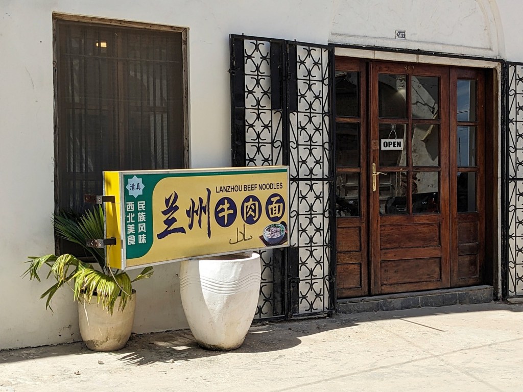 Three-ish museums and we hadn’t even had lunch yet, which we rectified by going to a Lanzhou noodle place. This is noteworthy because my super amazing wife had the eponymous noodles in Lanzhou and really enjoys them and now here we were in Zanzibar of all places having the noodles. We tried to go back the next day but they did not have electricity so we were glad we got to go at least once. It also fueled us up adequately to do some Tanzanite shopping, which we were doing at the behest of some relatives. This was less intimidating than anticipated; all the salespeople were very nice and not pushy. But this was after visiting Tippu Tip’s house. I had thought I had done this the first time I was in Zanzibar because back in those days I only had a paper map to go off of and misinterpreted the building, but now I could be sure. Plus the sign was a good indication I was in the right spot this time.