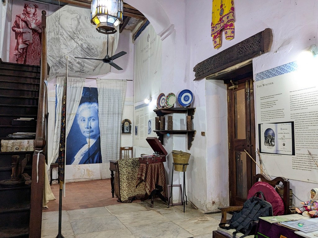 From here we were drawn closer to the orbit of our hotel, Emerson Spice. We managed to run into a new Zanzibari museum for me, the Princess Salme Museum. A slightly surreal experience; we thought it was closed, but someone was in there and took our fee, and then promptly disappeared. Later the museum’s proprietor showed up, also surprised about the lack of his colleague. One of the two mentioned that it was “the smallest museum in the world” though having been to the Freddie Mercury museum I’m not sure it’s the smallest museum in Stone Town. There is quite a bit of scholarship in there and we learned a lot about Princess Salme, aka Emily Ruete. She had quite the life and certainly had to scrap for herself. We both fought the urge to buy a copy of her memoirs, each thinking about our large stacks of unread books at home. Before we departed the museum the proprietor took our pictures at the museum for us and put rose water on our hands as he wished us on our way. Then, if I am recalling the series of events correctly, we ducked into an art exhibit being put on by Emerson themselves, which was fairly moving.