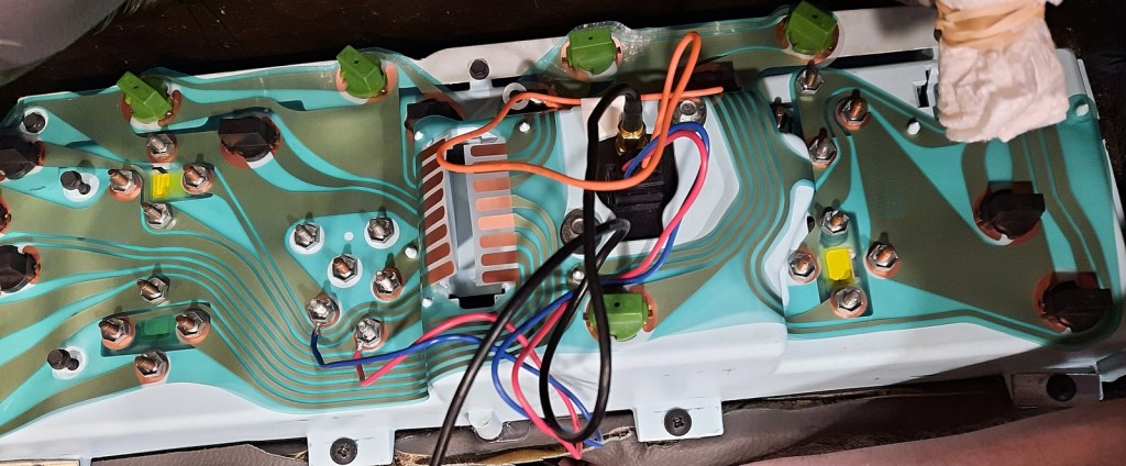 And finally below we have the speedometer installed into the instrument cluster and working great! It’s obviously not the stock speedometer but I don’t think it looks too bad in with the other instruments. A last-second change I made which I think helped enormously was to replace the dial. The one that came with the GPS speedometer was red and designed to be backlit at night. I quickly printed up a new one that matched the other dials and it helps the GPS speedometer blend in a lot. I am very happy with the look. There are improvements to be made in the next round, and if I had the money the thing to do would probably be to figure out how to get a GPS speedometer where the servo for the dial is separate from the circuit board so I could place it better, along with making an entirely custom faceplate that matches the stock one. But this is for the future.