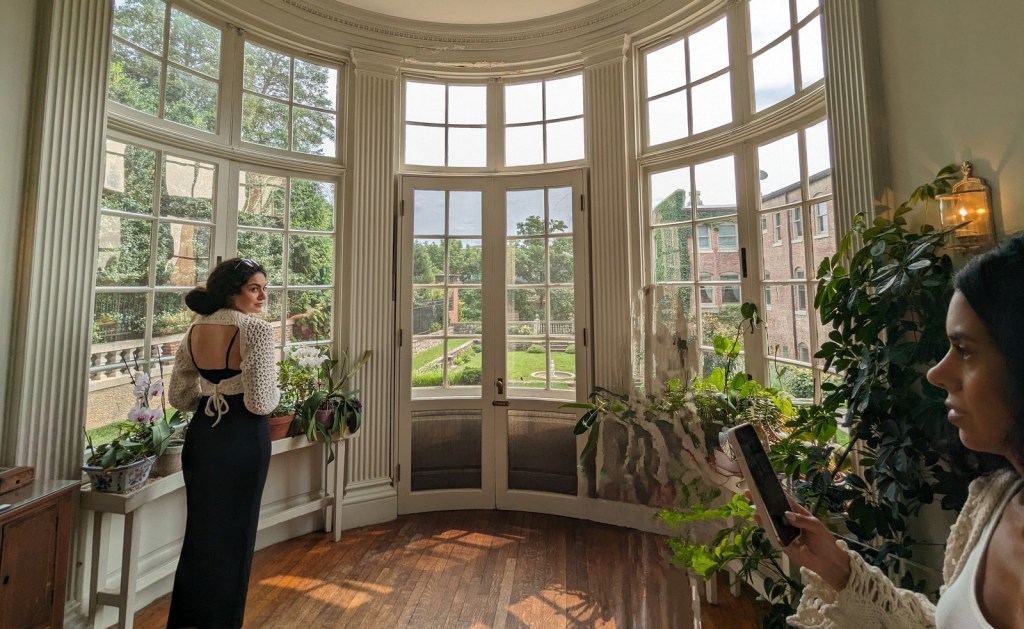 As house tours go, I guess it is a pretty nice house? I haven’t seen the inside of many of these sorta embassy row mansions so hard for me to compare. The staycation, besides featuring very nice floors also featured a good number of tapestries, including at least one large one in this house. The most popular spot was the lovely little sunroom at the top of the stairs that looked out over the garden, and as you can see it was a great spot for pictures: