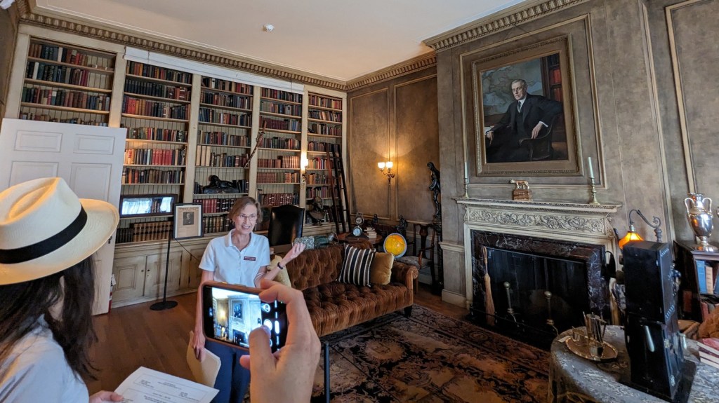 The final detail I’ll note is that up in Edith’s bedroom I saw a statue and then a painting of Pocahontas which our guide hadn’t mentioned but from having recently gone to the Museum of the American Indian I had learned that a good chunk of well-to-do Virginians liked to claim descent from Pocahontas (nee Amonute). This caused problems when Virginia was starting to implement some hella racist laws saying anyone with non-white descent was going to be non-white, which would have included these well-to-do Virginians until the lawmakers included a carveout. Oh racism. Anyways I spotted these Pocahontas things and asked and one of those well-to-do Virginians claiming descent from Pocahontas included Edith Wilson, so there is some cross-museum synergy for you.