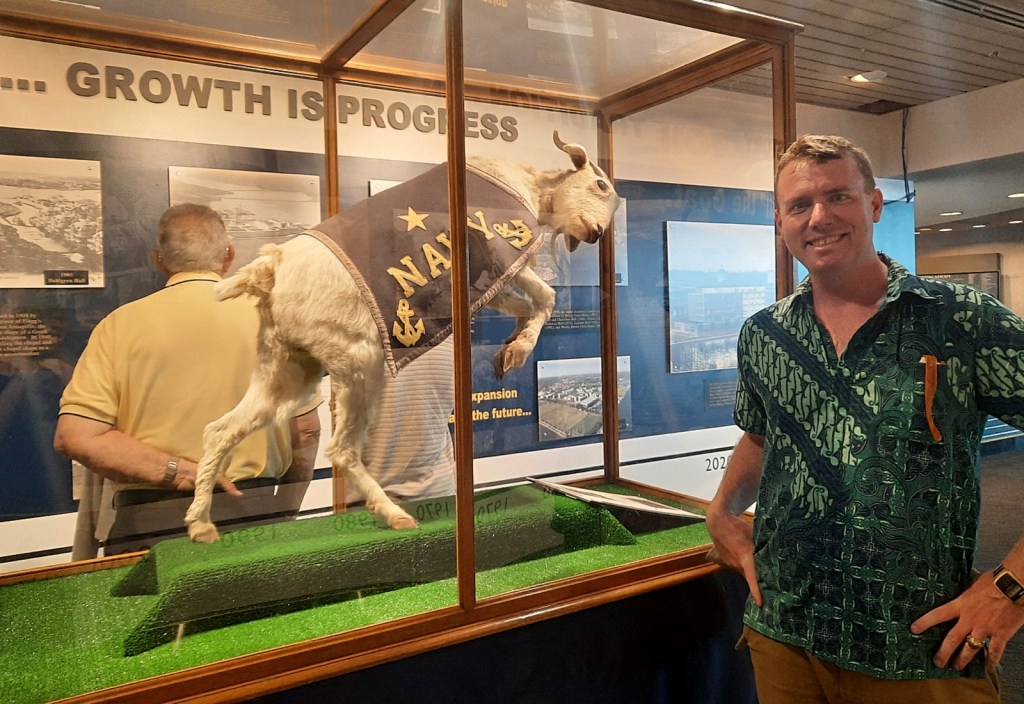 We started at the Visitors Center because they had bathrooms. While there I was delighted to discover the one of my absolute favorite parts of the Academy was housed there, namely 3-0 Jack Dalton. 3-0 Jack Dalton is the stuffed goat in the photo at the top. He was the only Naval Academy mascot not named Bill, and the reason I like him is because he is a century-old stuffed goat that the Academy clearly doesn’t quite know what to do with. I have been going to the Naval Academy since I was but a wee lad, and I think I remember that goat near the ice rink, back when there was an ice rink in Dahlgren instead of across the river. The last I saw him he was in the Midshipmen Activities Center, and now he is stuck awkwardly in a hallway in the Visitor Center, greeting the legions of kids who want to be Midshipmen someday and haven’t quite realized what they’re signing up for yet. This blog post will not feature any cannons, though my one complaint about the Naval Academy decorating scheme is that it is full of cannons they clearly feel they can’t get rid of anymore because now they are Historic instead of just Old. In the same way, I assume at some point you can’t just put your century-old stuffed goat on ebay.