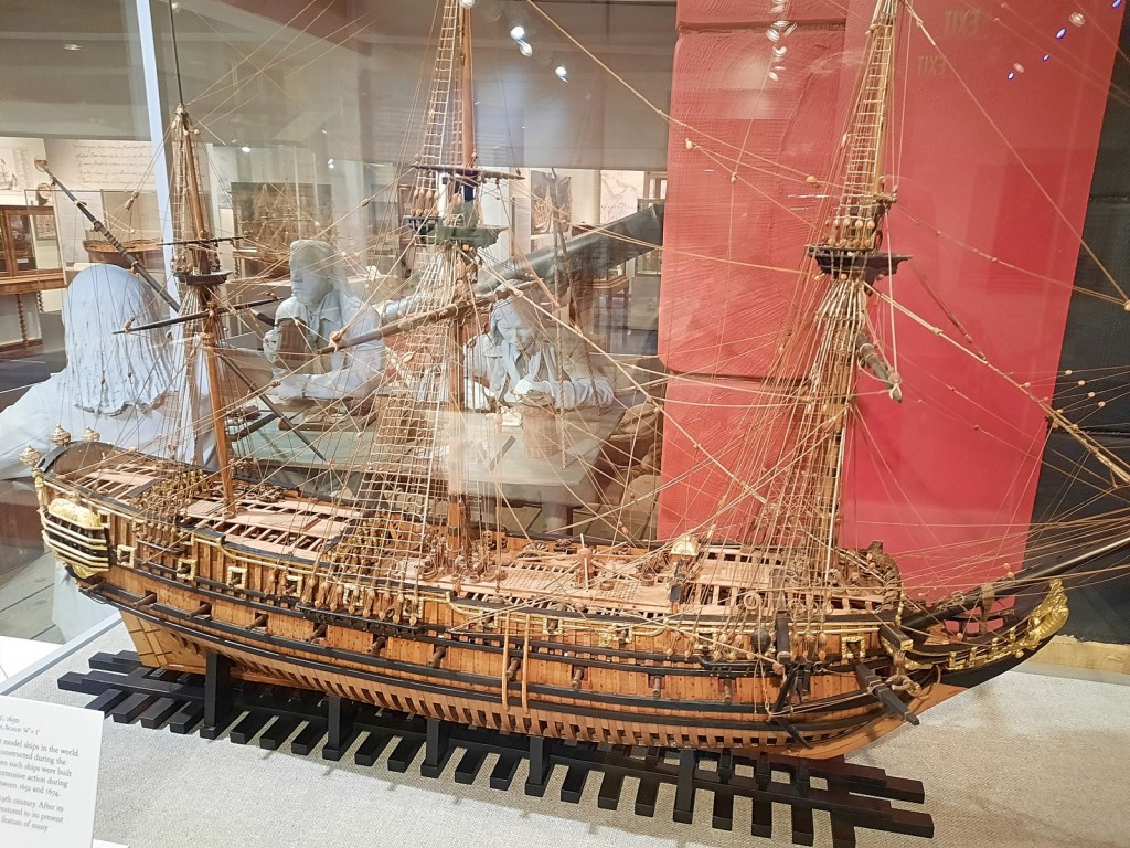 After this I dragged her past all the academic buildings. At each academic building I pointed to it and was like “I used to go to classes in there.” I even pointed to the little Chemistry Majors Study Room at Michelson where I probably spent most of my time. Then it was off to the Naval Academy Museum so we could stare at all sorts of artifacts. By this time we were kinda pooped actually so it was a bit of a whirlwind tour. I was mostly looking for pictures of myself, because I am so important and all, but alas while there was some Class of 2011-specific stuff there was no me. Oh well. I did make sure that we went upstairs to the real centerpiece of the museum, which were all the old model ships they have. Look at this impressive piece! 400 years old!