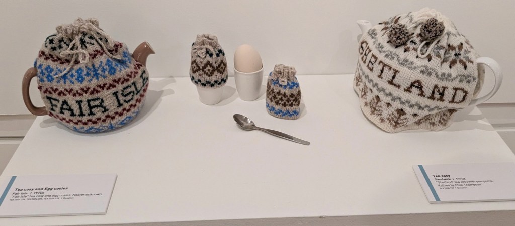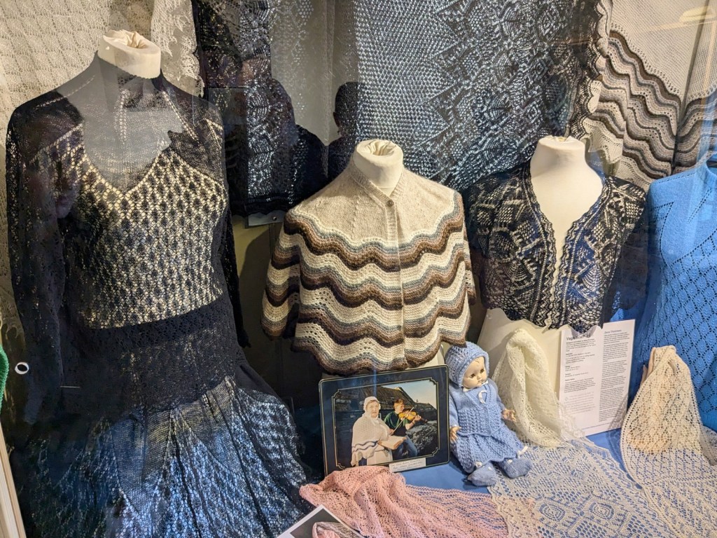 The first of these was a class on net mending. This was hosted by George, a former fisherman with the heaviest Shetland accent I had so far heard. During the net mending itself he also tended to talk with a knife held in his mouth, which added significantly to his charm if not clarity. The first half of this experience turns out was actually a tour through Shetland’s fishing history via the Shetland Museum’s collections. This was a particular and unexpected treat because we got to see the boats. What had been one of the museum’s most popular displays was its boat hall where various examples of historic Shetland boats were hung from the ceiling. But as George explained “health and safety” got to ‘em, and the boats had to be taken down and put in the shed, “where no one gets to see ‘em.”