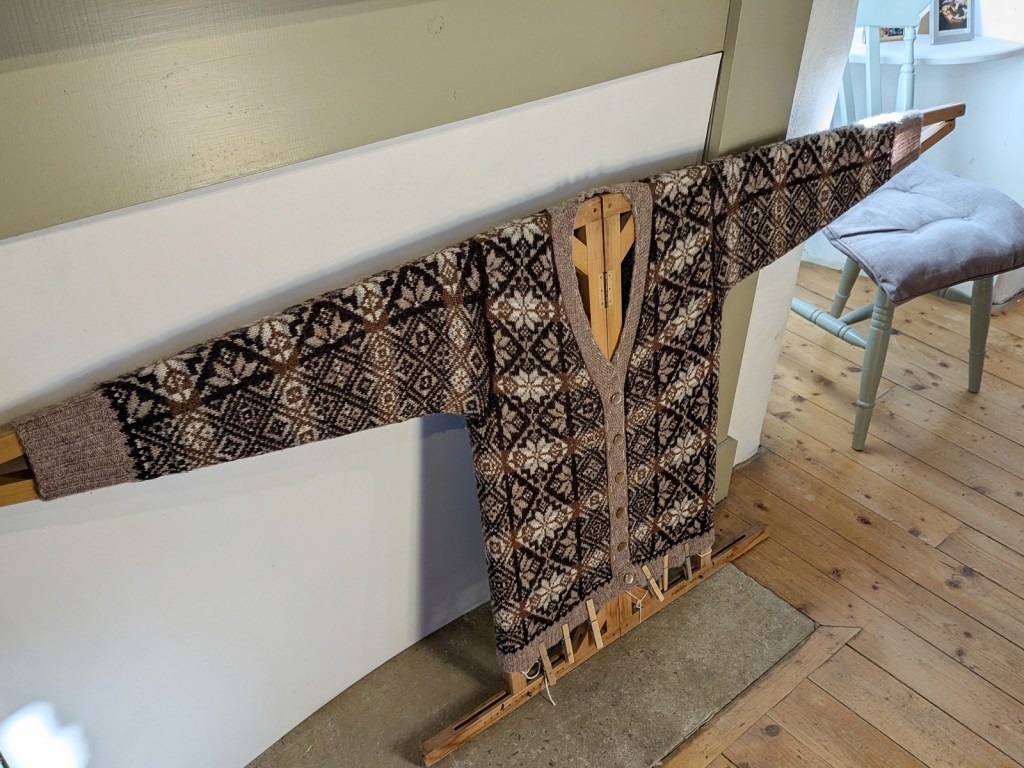And what a talk it was! It was all about the folk symbolism of taatit rugs. It was given by Dr. Carol Christiansen and was fascinating. Taatit rugs are in fact heavy pile bedspreads, important for blustery Shetland nights. She had gotten interested in the rugs as a window into Shetland folklore. The rugs often feature particular symbols and no one quite was sure what they meant. So she sat down to figure it out and turns out it is pretty deep. Most of the talk was a dive into Shetland mythology, much of which is linked to Norse stories but which have developed on their own on the isles. Especially important were the trows which inhabit Shetland. With sleep being such vulnerable times, the symbols on the taatit rugs acted to ward off the witches and trows that could come and prey on you at night. The rugs also had other stories associated with them, and would sometimes be made by a betrothed couples’ families as a wedding present. Since these were some rare textiles made purely by and for Shetlanders for their own private homes they were such an interesting window into the local culture.